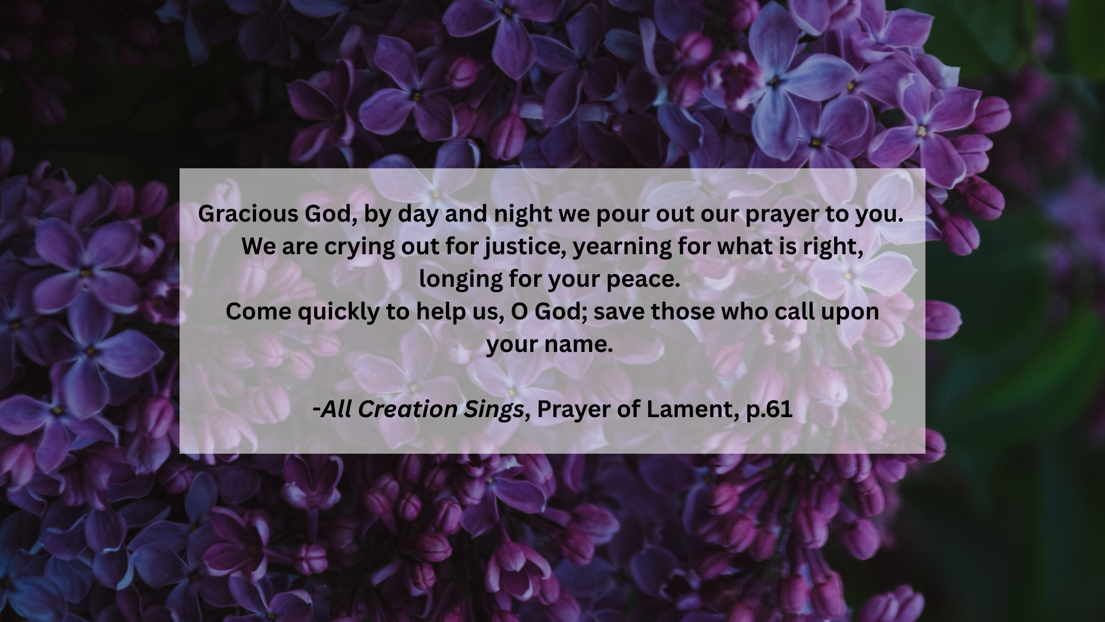 Remember that resources created for a specific season can be utilized beyond that season. Elements of the Seasonal Rites for Lent that speak to times of suffering and lament, especially the service “Holy Lament: A Worship Series for Lent” could be adapted for other moments of lament and prayer.